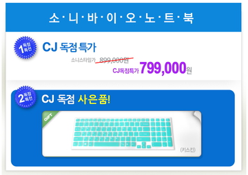 CJ몰에서는 소니의 보급형 노트북 SVE15112FK/W를 단독으로 특가 판매하고 있다. 기존 오픈마켓 최저가(728,000원)보다 35,000원 저렴한 692,550원에 제품을 구매할 수 있으며, 키스킨을 사은품으로 받을 수 있다.
