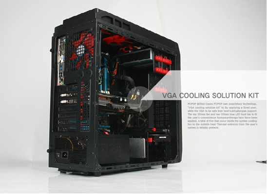업체 피씨팝컴퍼니는 VGA 쿨링 솔루션 킷트를 적용한 미들타워 케이스 'PCPOP Million