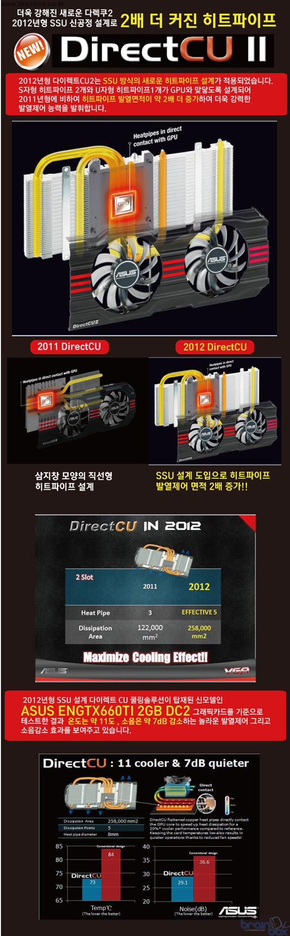 ASUStek사의 국내유통사인 에스티컴퓨터(대표 서희문)는 강력한 내구성과 성능 그리고 공격적인 가격정책을 통해 화제를 일으키고 있는 신제품인 ASUS ENGTX660TI 2GB DC2 그래픽카드에 새롭게 적용된 차세대 SSU 설계 다이렉트 CU 기술자료를 공개하였다.