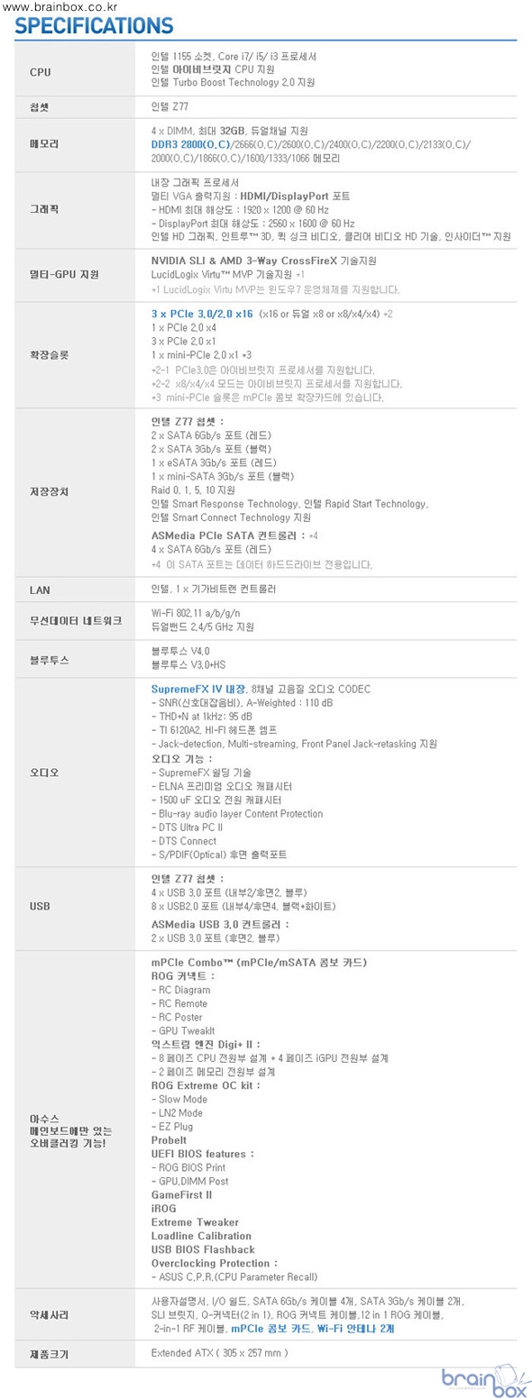 워터채널의 연결부위는 전기 도금된 3/8인치 니켈고리를 채용하여 거의 대부분의 일반 수냉 키트와 호환되는 장점을 가지고 있다. 이외에도 주요 경쟁사의 하이엔드급 제품들을 뛰어넘는 강력한 확장성과 각종 편의 기능들은 ASUS ROG 시리즈의 명성을 이어가기에 부족함이 없다.