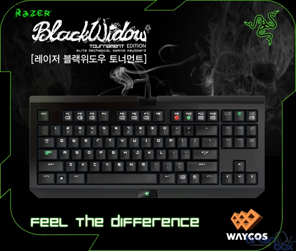- 완전 기계식 키 (체리 MX 청축 스위치) 최상급 하이엔드 게이밍 기어 제조업체인 Razer의 한국 공식파트너 ㈜웨이코스(대표:고민종)가, 완전 기계식 키를 갖춘 컴팩트 사이즈에 스마트한 성능의 Razer Blackwidow 토너먼트 US 게이밍 키보드를 출시하였다.