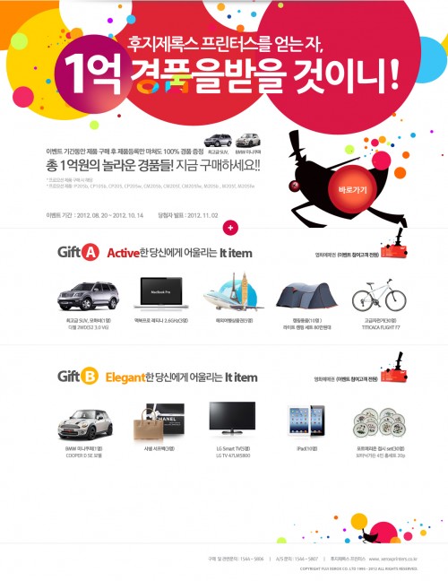 후지제록스 프린터스(대표 유성렬 www.xeroxprinters.co.kr)가 총 1억 원 상당의 경품을 내건 ‘1억 경품을 뽑아라’ 이벤트를 실시한다고 금일 밝혔다.