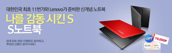 오픈마켓 11번가(www.11st.co.kr)는 전세계 2위 PC브랜드 ‘레노버’와 손잡고, 28일 전세계에 첫 출시되는 노트북 ‘S시리즈‘를 국내에 단독 유통한다고 28일 밝혔다. 이와 함께 최신 노트북 ‘S시리즈’ 출시이벤트 '나를 감동시킨 S노트북'을 9월 30일까지 진행한다. 11번가는 구매 고객 중 추첨을 통해 100명에게 ‘11번가 1만 포인트’ 등 혜택을 지원한다