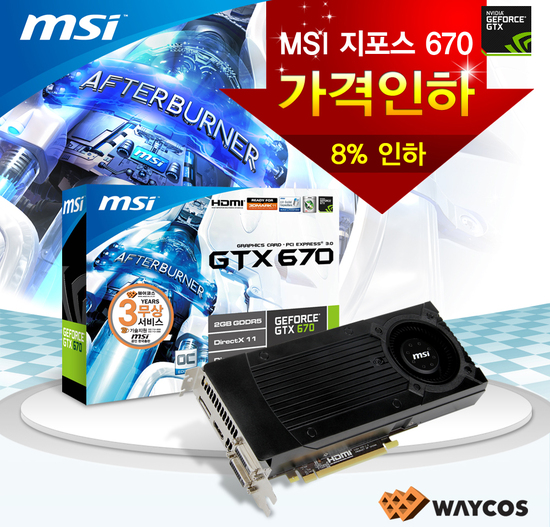 웨이코스 "MSI N670GTX" 가격 8% 내려