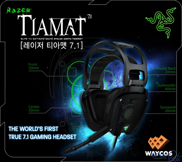 최상급 하이엔드 게이밍 기어 제조업체인 Razer의 한국 공식 파트너㈜웨이코스(대표:고민종)가 세계 최초로 하드웨어 7.1 채널을 지원하는 ‘Razer TIAMAT 7.1’ 게이밍 헤드셋 제품을 출시하였다.
