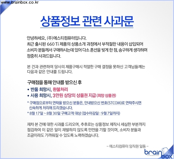(주)에스티컴퓨터 입니다. 먼저 저희를 항상 아껴주시는 고객 분들에게 감사의 말씀을 드립니다. 최근 출시된 GTX660TI
