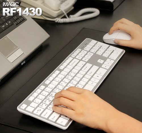 아이매직 무선 RF1430 슬림 키보드+마우스 / 펜타그래프 / 무선 2.4GHz / USB / 단순 / 일반 키보드 / 블록키보드/ 색상: 블랙, 핑크, 그레이 / 키보드 크기 : 850 x 124 x 17mm / 마우스 크기 : 109 x 60 x 38mm |