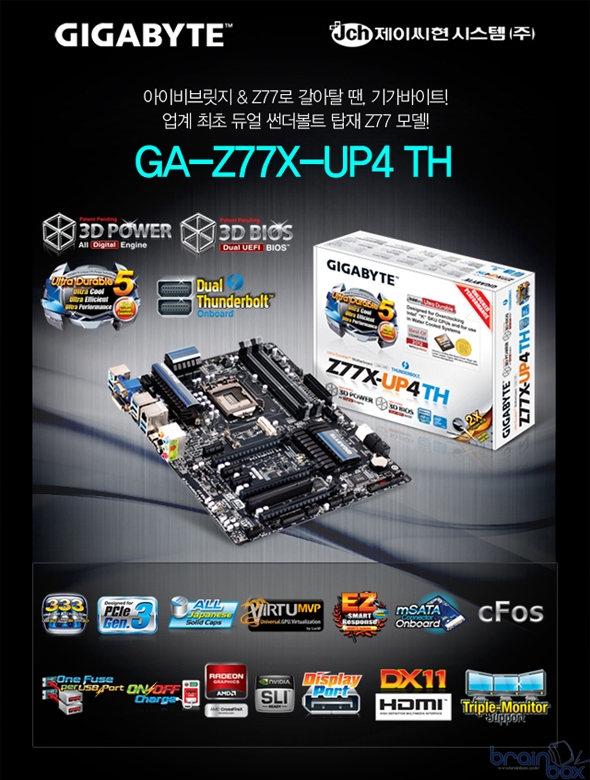 GIGABYTE Technology Co., LTD (이하 기가바이트)의 국내 공식 수입유통사인 제이씨현시스템(주)(대표:차현배)에서 Ultra Durable5 기반의 원-칩 디지털 설계로 더욱 차가워진 기가바이트 GA-Z77X-UP4 TH 썬더볼트 메인보드를 출시하였다.