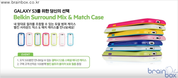 IT 주변기기 전문기업 한국벨킨(대표: 김대원 지사장 @belkinkr)은 갤럭시 S3를 위한 스타일리시한 듀얼 범퍼 타입의 서라운드 케이스 7종을 추가로 새롭게 선보인다. 지난번 국내 갤럭시 S3 출시에 맞춰 선보인 서라운드 케이스 4종에 이어 새롭게 출시하는 7종의 서라운드 케이스는 범퍼 스타일 케이스에 대한 국내 소비자의 선호도가 높아 추가로 출시되는 제품으로 국내 소비자 대상으로만 출시된다. 벨킨 갤럭시 S3 전용 서라운드 케이스는 갤럭시 S3 본연의 디자인을 그대로 유지하면서도 스타일리시함을 더해주는 듀얼 범퍼 타입의 케이스로, 내구성 및 그립감이 뛰어난 폴리카보네이트 소재와 충격 흡수 실리콘 소재의 두 가지 프레임으로 구성되어 있다. 갤럭시 S3에 완벽하게 피팅되는 슬림하고 감각적인 디자인과 스크래치나 외부 충격으로부터 기기를 안전하게 보호해주는 기능성까지 모두 갖춘 제품이다. 한국벨킨은 갤럭시 S3 전용 서라운드 케이스 새로운 색상 출시를 기념하여 벨킨 서라운드 믹스 & 매치 케이스 500개 한정 판매 이벤트를 진행한다. 벨킨 서라운드 믹스 & 매치 케이스는 갤럭시 S3 전용 서라운드 케이스의 내/외부 프레임 색상을 자신이 원하는 색상으로 선택할 수 있는 500개 한정 커스텀 케이스이며, 9월 11일부터 벨킨 온라인 스토어와 옥션을 통해 구매할 수 있다.