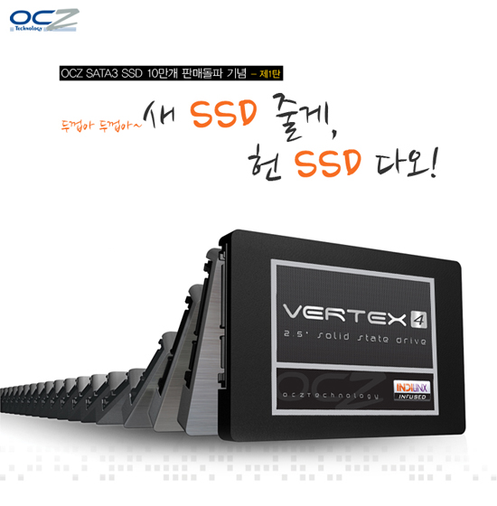 OCZ테크놀로지(www.ocztechnology.com)의 국내 디스트리뷰터인 아스크텍(대표:신형식 www.ask-tech.com)은 OCZ SSD(SATA3)의 국내 10만개 판매돌파를 기념해, 구형 SSD제품을 사용하는 OC