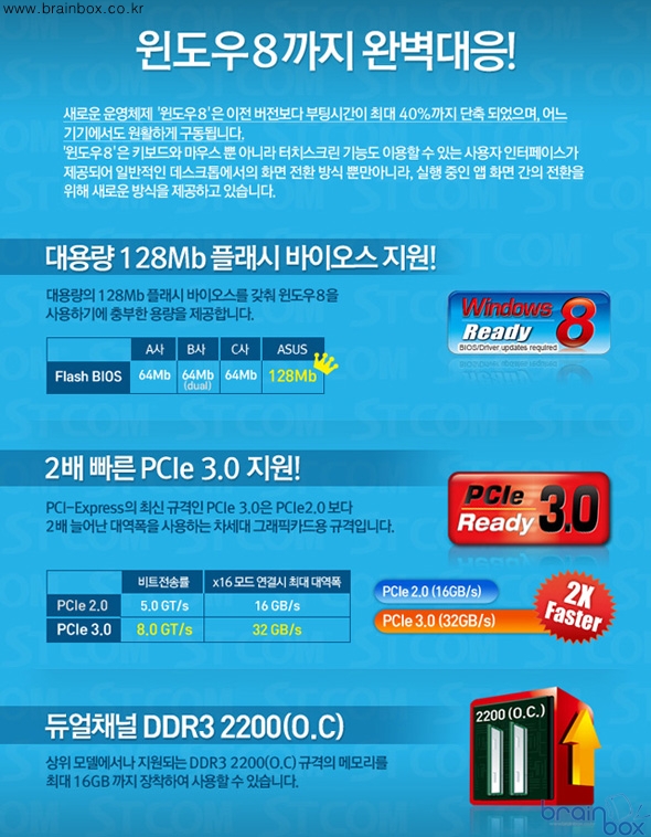 ASUS P8B75-M LX Plus 메인보드는 추후 윈도우 8 이 대중화되었을 때 UEFI 바이오스의 기능확대등을 위해서 대용량 128MB 의 롬 바이오스를 채용하여 추후 바이오스 기능 향상까지 대비하고 있다.