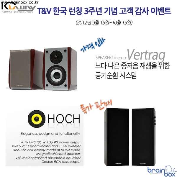 스피커 전문 업체 thohert-vander의 국내 유통사 케이디웨이는 T&V한국 런칭 3주년 기념 고객 감사 이벤트를 실시 한다.