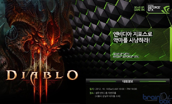 ? 오는 10월 14일 “엔비디아 지포스로 악마를 사냥하라!” 게임 대회 개최 비주얼 컴퓨팅 분야의 세계적인 선도 기업인 엔비디아(CEO 젠슨황)는 오는 10월 14일 서울 강남구 대치동에 위치한 섬유센터 3층 이벤트홀에서 국내 최초 디아블로 III(Diablo® III) 하드코어 게임 대회인 “엔비디아 지포스로 악마를 사냥하라!”를 개최한다.
