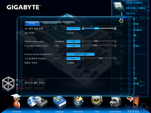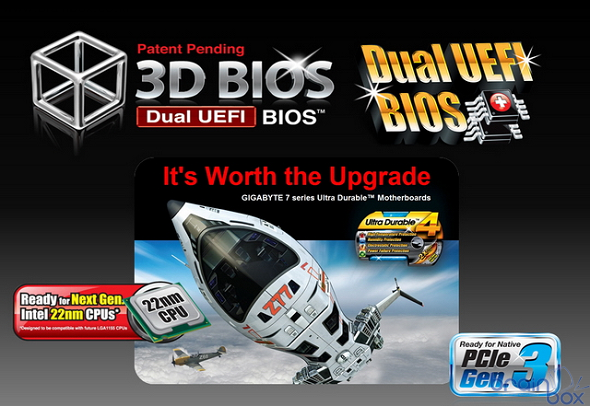 기가바이트의 독자적인 기술인 3D BIOS 인터페이스를 지원하는 인텔 Z77/H77 시리즈 메인보드는 사용자의 편의성을 위해 3D 인터페이스를 적용한 것이 특징이며, 이번 업데이트를 통해 한글을 지원하게 되어 설정이 낯설고 어려운 국내 사용자에게 더욱 쉽고 편리한 인터페이스로 누구든 시스템 퍼포먼스 향상을 꾀할 수 있다. 또한, 기가바이트 듀얼 UEFI BIOS는 시스템 설정에 능숙한 익스트림 유저와 오버클럭커를 위한 Advanced 모드도 제공하여 기존 Legacy BIOS보다 더욱 화려하고 편리한 인터페이스로 디테일한 설정과 오버클럭은 물론 시스템 튜닝 전문가에게도 큰 메리트를 제공한다.