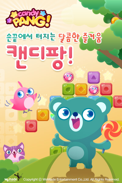 위메이드 엔터테인먼트(대표 김남철 corp.wemade.com)가 모바일 팡류 게임 캔디팡을 출시한다. 캔디팡은 위메이드가 지난 4월 발표한 ‘2012년 모바일 게임 라인업’ 중 미니게임 시리즈의 첫 작품으로 자회사 조이맥스(대표 김남철)의 링크투모로우(대표 이길형)가 개발했다.