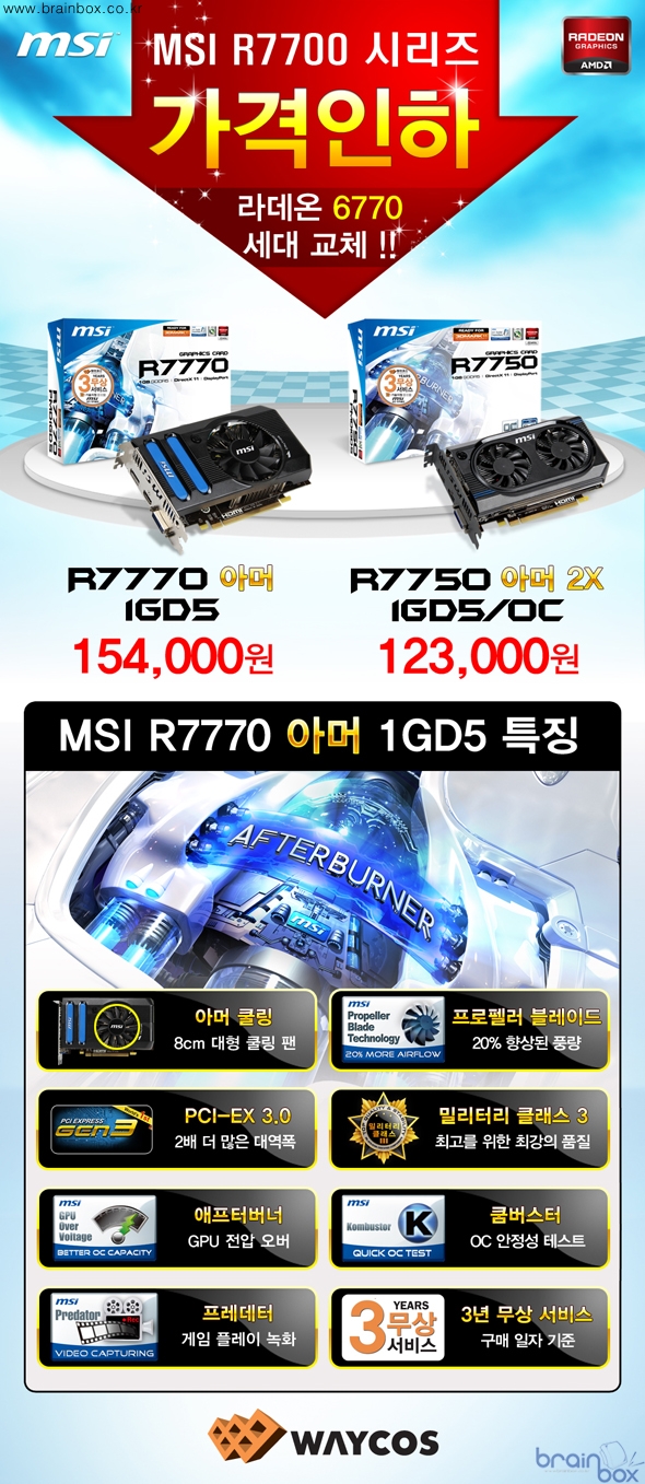 세계 최고의 VGA 제조 기술력을 갖춘, MSI의 한국 공식 디스트리뷰터인 ㈜웨이코스(대표:고민종)가 MSI 그래픽 카드를 사랑해주시는 한국 소비자들을 위하여 MSI R7700 VGA 시리즈 2종 제품 가격을 인하한다고 밝혔다.