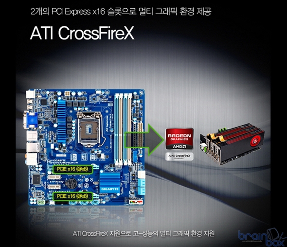 기가바이트 GA-Z77MX-D3H TH 메인보드는 mATX 폼펙터임에도 2개의 PCI-Express X16 슬롯의 지원으로, 2 Way AMD CrossFireX와 SLI 고-성능 멀티 그래픽환경의 지원으로 3D 작업은 물론, 고사양 게임의 화려한 3D 퍼포먼스를 체험할 수 있다.