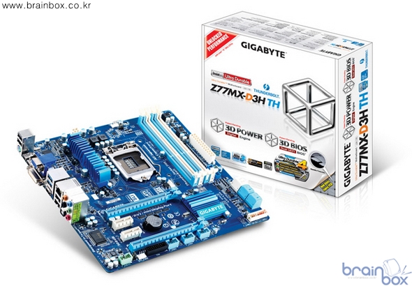GA-Z77MX-D3H TH 메인보드는 세계 최초로 썬더볼트를 탑재한 m-ATX규격 메인보드로써, 특히, 기가바이트만의 독자적인 기술인 듀얼 썬더볼트가 적용되어 일반 썬더볼트 메인보드보다 최대 2배 이상의 확장성을 자랑하여 최대 12개의 고-용량, 초-고속 썬더볼트 디바이스와 2개의 디스플레이 디바이스를 이용한 시스템 구축이 가능하다.