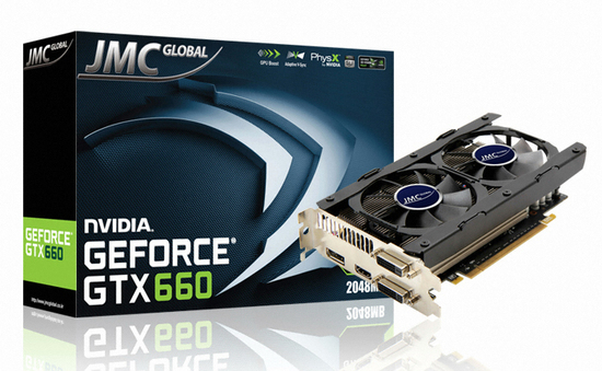 엔비디아의 지포스 GTX660 칩셋이 탑재된 'JMC 지포스 GTX660 D5 2GB Dual'은 980MHz의 코어 클럭과 GPU 부스트를 통해 1033Mhz까지 자동으로 클럭이 올라가며, 2GB의 GDDR5 메모리를 탑재했다. 효과적인 쿨링을 위해 2개의 팬이 있는 쿨링 시스템이 장착됐다. 가격은 다나와 최저가 기준 27만 2000원이다.