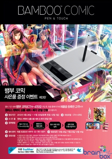 세계적인 태블릿 전문 기업 와콤(Wacom)의 한국법인 한국와콤(대표 서석건)은 금일부터 11월 30일까지 Bamboo Comic(뱀부 코믹) 모델 구매고객 전원에게 원피스 캐릭터 상품세트와 목각 관절 인형을 증정하는 이벤트를 진행한다.