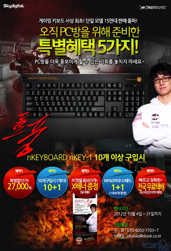 (주)스카이디지탈(대표 배정식)이 게이밍 키보드 ‘nKEYBOARD nKEY-1’의 15만대 판매돌파 기념으로 전국 PC방을 대상으로 특별할인가와 함께 푸짐한 사은품을 선물로 증정하는 이벤트를 진행한다.
