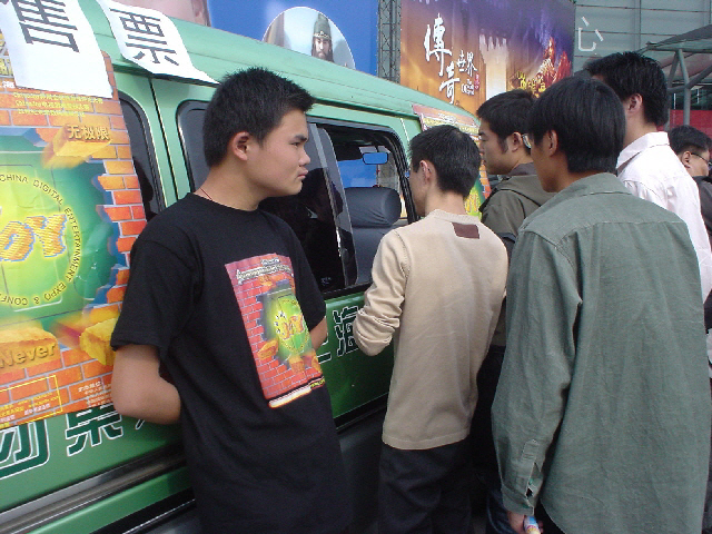 솔직히 큰 땅 덩어리 중국의 게임쇼에 대한 환상이 너무 컸던 탓일까? 기대보다 전시장 규모는 작았다. 한국 게이머들에게 익숙한 코엑스 전시장 정도의 규모라고 생각하면 이해가 쉬울 것이다. 게다가 필자를 더욱 놀라게 했던 건 입장권을 봉고차에서 판매하고 있었다는 사실~! 자본주의의 물결이 휘몰아치는 중이라고는 해도 고부가 엔터테인먼트 사업에 대해 이제 걸음마를 떼기 시작했기 때문일까 상상도 못했던 광경이었다.