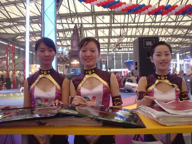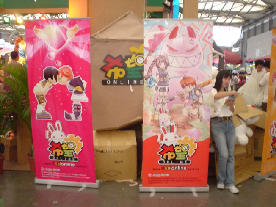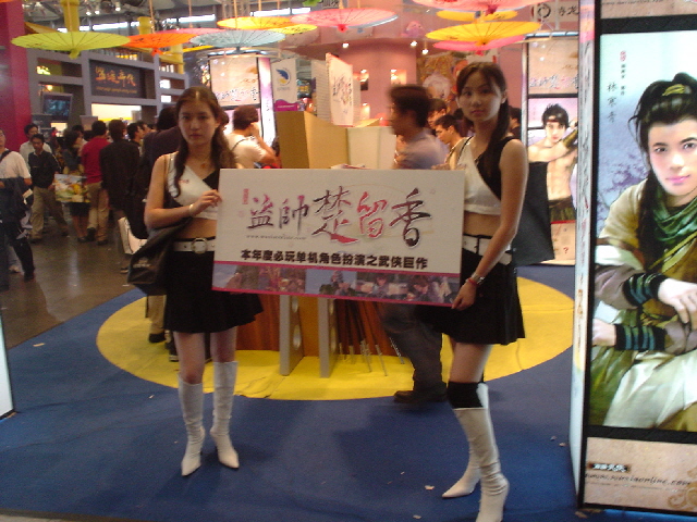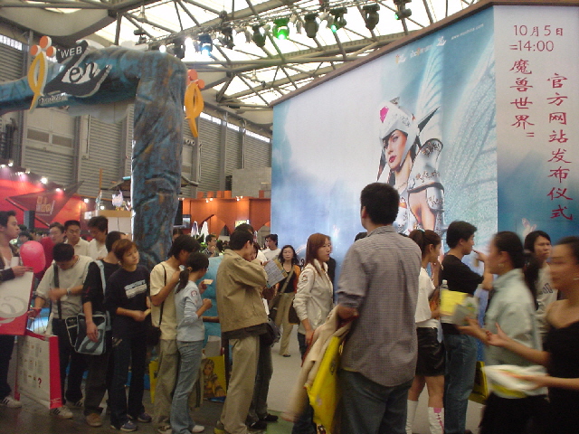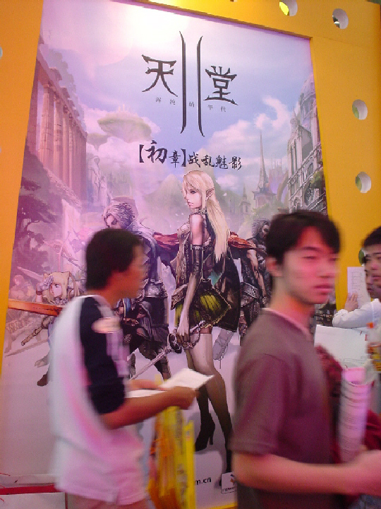 전시장에서 좋은 위치를 차지하고 있는 부스 역시 샨다의 <미르의 전설>을 위시해 엔씨소프트 부스에서 선보인 <리니지 2>, 최근 중국 수출 성사로 뜨거운 이슈가 되고 있는 <씰 온라인>, <라그나로크 온라인>, <메틴 2>, <BnB>, <거상>, <릴 온라인>, <미르의 전설 3> 등이 눈에 띄었고, 이 가운데 위메이드의 “창천”은 중국에서 지명도 높은 위메이드가 전략적으로 중국시장을 염두에 두고 개발한 타이틀의 소개라는 점에서 특히 큰 의의를 지녔다. 아쉽게도 모두 중국화 된 제목 때문에 쉽게 게임을 식별하기 힘들긴 했지만, 영문 제목과 낯익은 일러스트 등을 통해서 한국 게임과 중국게임은 구별할 수 있었다.