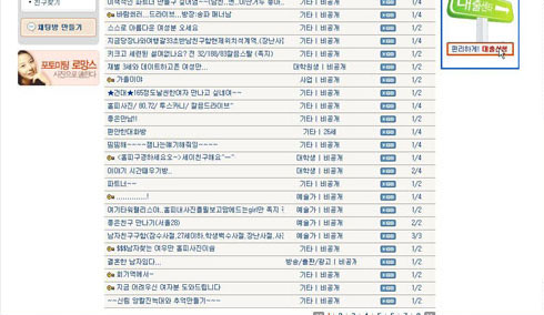 ▲ 대표적인 인터넷 채팅 서비스 세이클럽, 성매매를 의미하는 내용의 대화방들이 가득하다 |