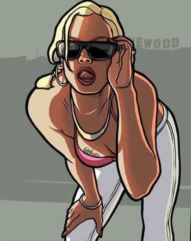 ▲ GTA 시리즈에 등장하는 윤락녀는 주인공의 체력을 회복하기 위해 꼭 필요한 존재다(그림은 10월 발매 될 GTA: 산안드레아스에 등장할 여성 캐릭터) |