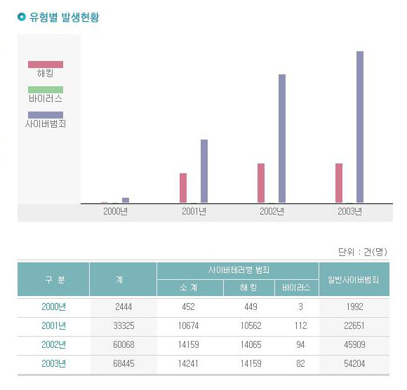 ▲ 사이버 수사대의 통계에 따르면 해킹이나 바이러스로 인한 범죄보다 인터넷 채팅이나 온라인게임으로 통한 성폭행, 스토킹 등의 일반 사이버범죄가 더 많은 증가추세를 보이고 있다 |
