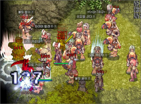 미궁숲에서 등장하는 보스몬스터 바포메트가 같은 장소에서만 리젠된다는 소식을 듣고 달려가봤다. 문제에 장소에 가보니 이게 왠일... 수많은 기사들과 마법사들이 준비를 하고 있는 것이 아닌가? “아 이렇게 모여있다가 먼저 공격받는 쪽이 잡는거구나”라고 생각했지만 바포메트가 나타나니 많은 사람들은 ‘매너’는 안중에도 없는 듯 무조건 공격을 난무하기 시작했다. 그야말로 스틸의 천국이였다. 어째서 한곳에서만 보스몬스터가 계속 리젠되도록 한 것일까? 이것은 어쩌면 스틸을 조장하는 일이 될지도 모른다. 미궁숲지역에서 골고루 등장하면 이런 일은 발생하지 않을텐데... 역시 씁쓸했다.