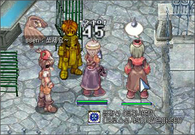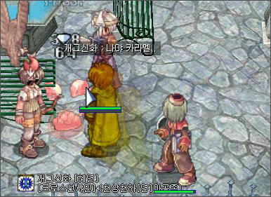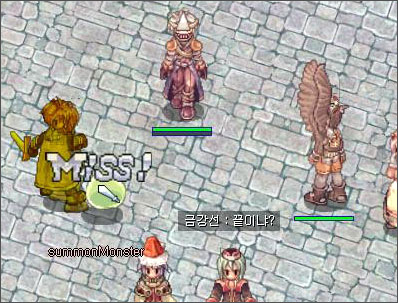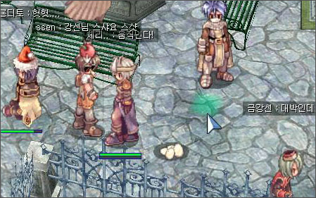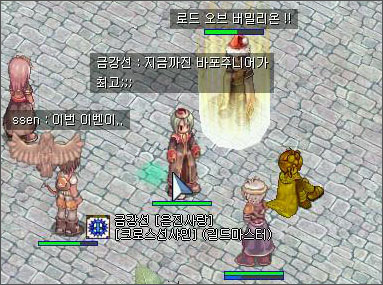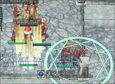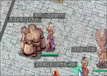 결국 이번 길드이벤트에서 느낀 것이지만... 고목나무가지나 오래된 파란상자 절대 사서 열어볼 일 아니다. 그냥 몬스터에서 떨어지면 주워서 쓸 일이지 사서 쓸일은 아니다. 어쨌든 그렇다곤 해도 우리는 즐겁게 여름휴가를 즐겼으니 뭐 대만족이었다^^ 그리고 다시 프론테라로 돌아온 순간 여름휴가의 끝과 함께 악의 세력과의 대결이 시작되었다. 마침 도착하고 헤어져 있는데 음마교주가 다가왔다.
