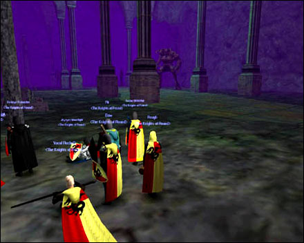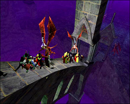그곳에서 하단부로 내려가자 거대한 홀 안에서 날개 달린 서큐버스가 슉슉 날아다니는 모습을 볼 수 있었다. 거대한 홀의 전경… 가운데엔 뭘 잡아 찌게를 끓여먹으려는지 철판 아래에 물이 끓고 있는 모습이 보였다. 그 찌게냄비(?) 반대편에 바로 길드가 목표했던 ‘프린세스’라는 보스몹이 존재하고 있었던 것이다. DF의 가장 약한 보스몹이라고 하나 쉽게 볼 놈은 아닌 듯 했다. 마법도 통하지 않는다고 하니 말이다. 주변에 있는 잔당을 모두 제거하자 또 다시 슈퍼 몸빵 짱가님의 조심스러운 풀링이 시작됐다. 4그룹의 인원이 마치 초등학교 1학년 아이를 학교에 처음 보낸 걱정스런 마음으로 지켜보는 가운데 홀홀 단신 찌게 냄비를 넘어 홀로 뛰어 들어가는 짱가! 짱가님이 크로스보우의 볼트를 날리고 뒤로 후다닥 뛰어오는 모습과 함께 프린세스가 거구의 날개짓과 함께 우리 그룹을 향해 날아오는 장면이 보였다.
