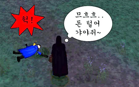 이렇게 훔칠 수 있는 물건은 상대가 인벤토리에 담고 있는 돈이나 기타 잡동사니 물건 등이며 착용하고 있는 물건은 뺏을 수 없다. 이제 시체가 되서 마냥 자국 사람에게 부활받기를 기다리는 게이머라면… 수시로 인벤토리를 확인해 보는 것이 좋을 것이다. ^^