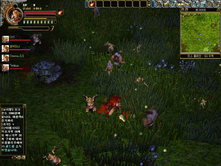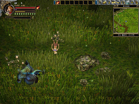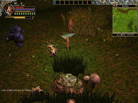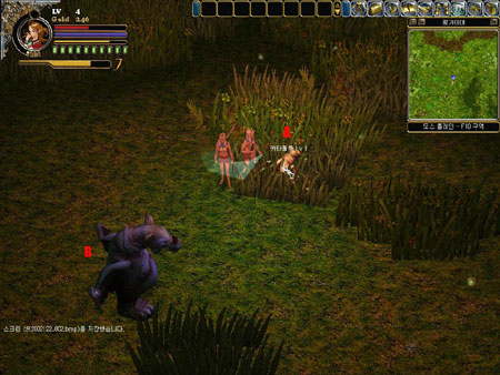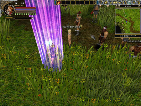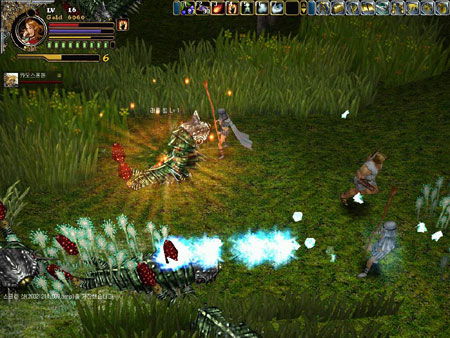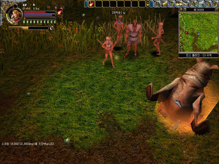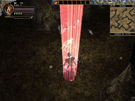 인벤토리는 어느덧 온갖 잡동사니들로 가득차 있었고 나의 레벨도 무려 4가 되어 있었다. 레벨업할 때 몸 주위를 감싸 오르는 오로라가 재밌어 한 시라도 빨리 렙업을 위해 수단과 방법을 가리지 않았던 내게 있어 갑자기 충격적인 장면이 눈에 들어왔다. 오로라는 나만 감싸 오르는게 아니었다. |