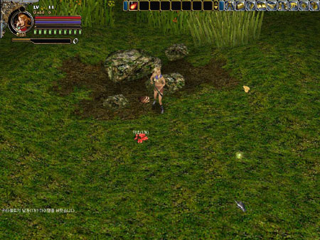 그런 애매모호한 협박에 넘어갈 내가 아니었다. 원래 보통 게임에서 주인공 캐릭터는 작고 적 캐릭터가 상대적으로 큰 건 당연지사, 게다가 불패를 기록하며 역전의 순간을 밟아온 내게 있어 두려움 따윈 없었다. 난 자신이 연약한 여자라는 사실을 망각한 채 녀석에게 돌진해 몽둥이를 휘둘렀다. 그러나 비명을 지르고 쓰러지기까지는 오래 걸리지 않았다. 그 때 난 레벨 5로 아무런 방어구나 무기는 물론 마법도 없는 상태였다.ㅠㅜ 확실히 덩치가 커서 그런지 충격이 컸다. 그러나 죽어버린 아서의 여인을 살릴 방법이 막막했다. 파이날 판타지라면 리레이즈를 사용해 죽으면 다시 살릴 수 있다지만 이건 얘기가 달랐다. 하늘이 무너저도 솟아날 구멍이 있다고 했던가? 반가운 메시지가 들어왔다. <공지> 안녕하세요. 게임지기입니다. <공지> 렙업(레벨업)하시다가 죽으시면 화면 오른쪽 하단에 작은 버튼을 누르세요 부활할 수 있답니다!^^ <공지> 그럼 즐겜하세요!~ 오~ 역시 신은 날 버리지 않았군~! 난 바로 아서의 여인에게 인공호흡을 실시해 부활시켰다.
