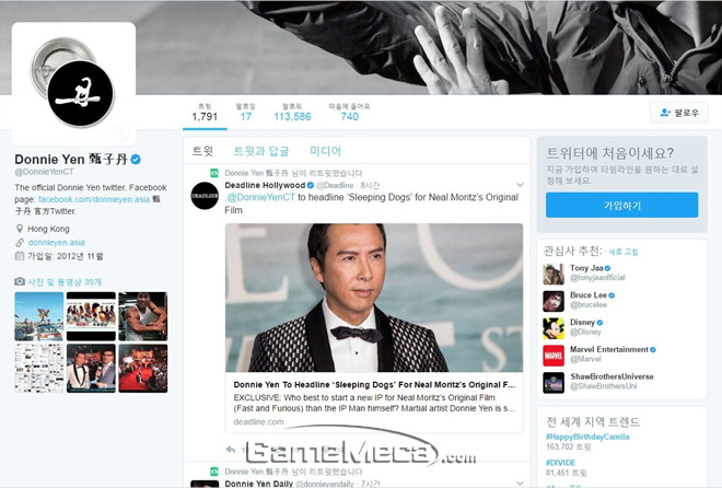 ▲ 견자단은 공식 트위터를 통해 '슬리핑 독스' 출연을 확인해주었다