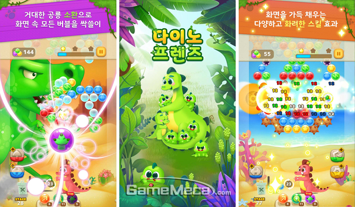 한편, 글로벌 원빌드로 선보이는 ‘버블슈터 다이노 프렌즈’는 구글 플레이 스토어에서 다운로드 가능하며, 곧 애플 앱스토어를 통해서도 서비스할 예정이다.