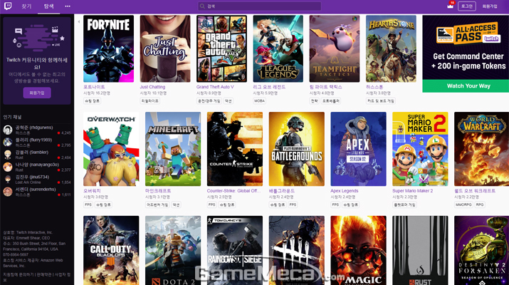 ▲ 대표적인 게임 개인방송 플랫폼인 트위치 (사진출처: 트위치 공식 홈페이지)
