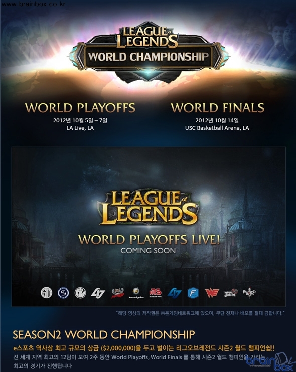 라이엇 게임즈(아시아 대표 오진호)는 리그 오브 레전드의 세계 대회인 시즌2 월드 챔피언쉽의 플레이오프
