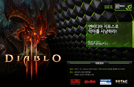 이번 게임 대회에 대한 자세한 내용은 인터넷 웹페이지(nvidia.pc-no1.co.kr/diablo3)로 접속하면 확인 할 수 있으며 사전 등록자 이외에도 현장 등록을 통해 대회 참여과 관람이 가능하다.