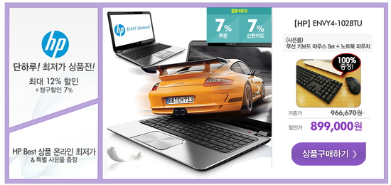 10월 18일 10시부터 진행되는 이 행사는 최대 12% 쿠폰과 함께 7% 청구할인이 적용되어, 인터넷 최저가로 HP 노트북을 살 수 있다. 또한, 행사 제품을 구매하는 소비자들에게 사은품을 증정함으로써 소비자는 일거양득의 혜택을 누릴 수 있다.