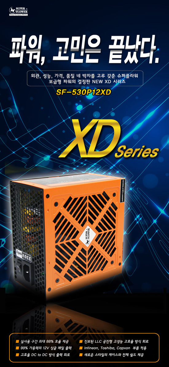 파워서플라이 전문업체인 (주)뉴젠씨앤티(대표 왕규희 http://www.newzencnt.com)는 한국 유저들을 위해 특별히 기획/개발된 슈퍼플라워의 새로운 라인업 모델인 SF-530P12XD를 출시 했다.