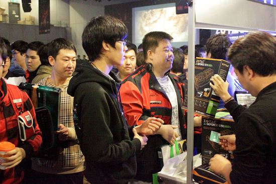 특히 이날 대회에서 가장 큰 주목을 끌었던 것은 다름 아닌 조텍 지포스 그래픽카드 할인 행사. 조텍의 인기 모델 지포스 GTX 660 Ti DUAL SILENCER 와 지포스 GTX 660 DUAL SILENCER 두 모델을 각각 30% 씩 할인 판매하자, 이를 구매하기 위한 이들로 3~4시간 전부터 인산인해를 이뤘다.