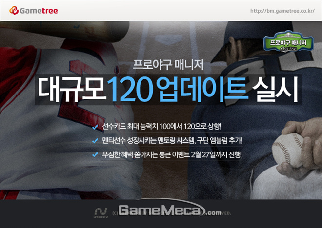 엔트리브소프트는 프로야구단 운영 시뮬레이션 게임 '프로야구 매니저'에서 2013년 첫 대규모 업데이트 ‘120’을 31일 실시한다고 밝혔다.