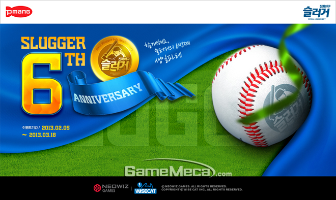 '슬러거' 6주년 기념 이벤트는 3월 18일까지 총 6주간 진행되며, 자세한 내용은 공식 홈페이지 (http://slugger.pmang.com)에서 확인할 수 있다.