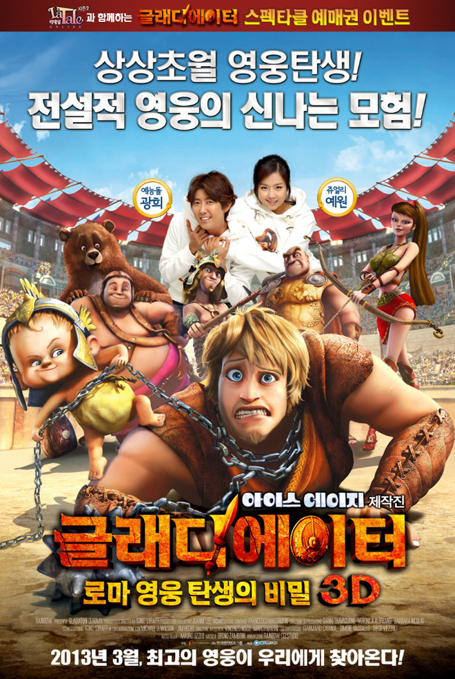 오는 3월14일 개봉 예정인 애니메이션 영화 ‘글래디에이터’는 전설적인 영웅 글래디에이터의 신나는 영웅 탄생기를 그린 내용으로 예능돌 광희와 쥬얼리 예원이 더빙 캐스팅에 발탁되어 개봉 전 부터 화제가 된 바 있다.