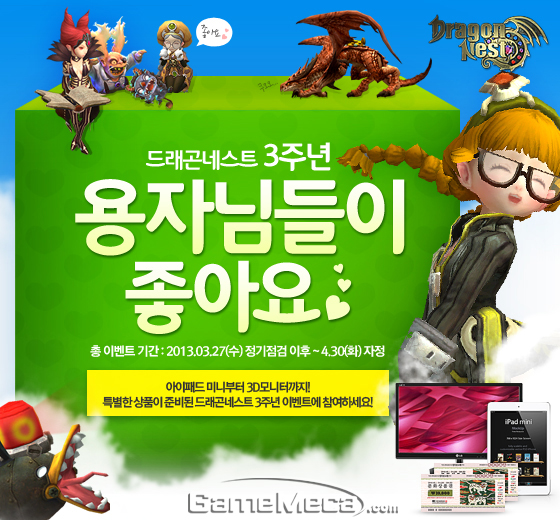 액토즈소프트가 서비스하고 있는 아이덴티티게임즈의 대표게임 ‘드래곤네스트’가 27일부터 서비스 3주년을 기념하는 이벤트를 진행한다.