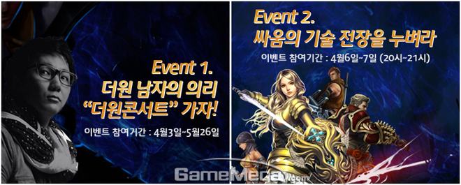 2차 비공개 테스트 이벤트도 진행된다. 더원 남자의 의리 더원 콘서트 가자!는 친구를 추천한 회원 중 상위 50명을 선정하여 더원 콘서트 티켓 1인 2매를 증정한다. 싸움의 기술, 전장을 누벼라!는 '레드블러드' 전장에서 승리하는 팀 전원에게 '레드블러드' T-셔츠 또는 기념품을 증정하는 이벤트이다.