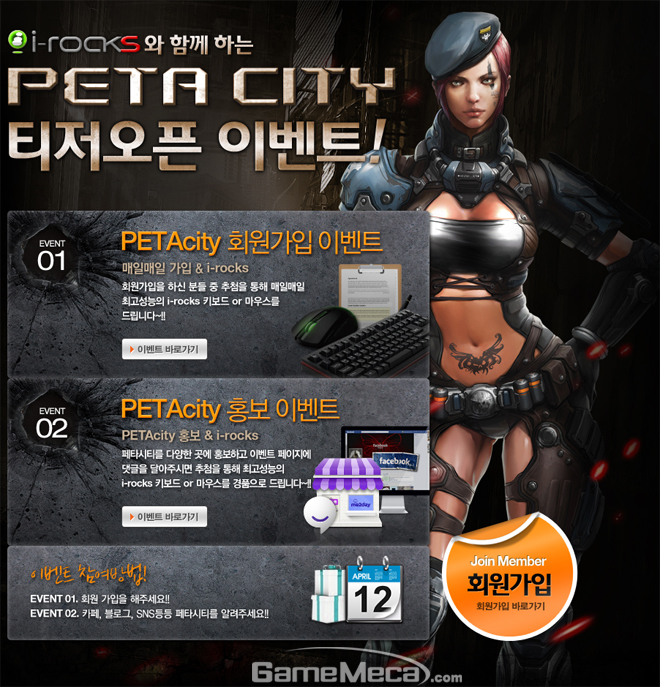 이번 티저 사이트에서 회원가입을 하면 비공개 테스트에 참여할 수 있는 혜택이 제공된다. 또 '페타시티' 비공개 테스트 응원 이벤트를 진행하여, i-rocks의 게이밍 키보드와 게이밍 마우스를 증정한다.